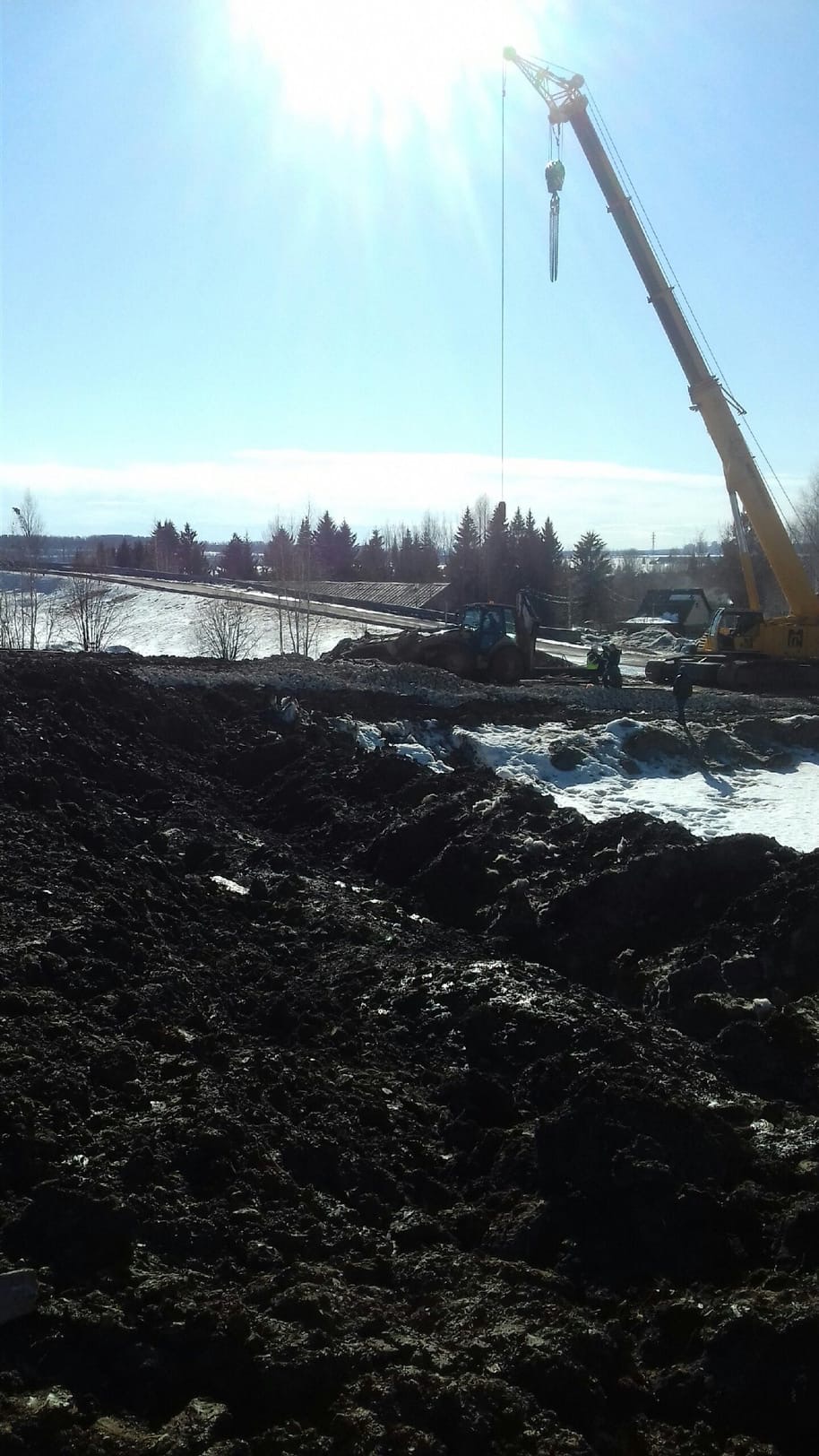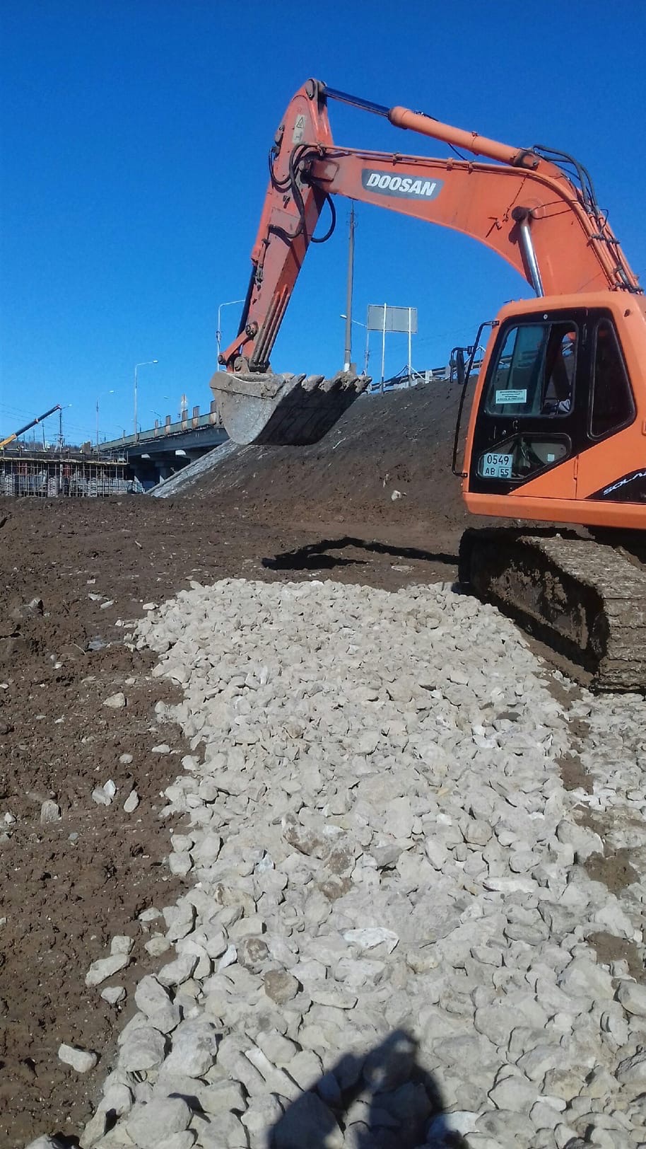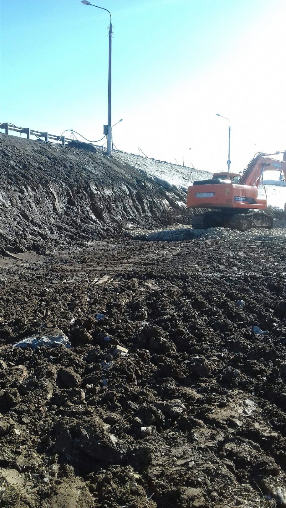 Коломна. Чусовской мост. Строительство дорожной развязки в Пальниках. Подготовка площадки для устройства шпунтовой подпорной стенки.