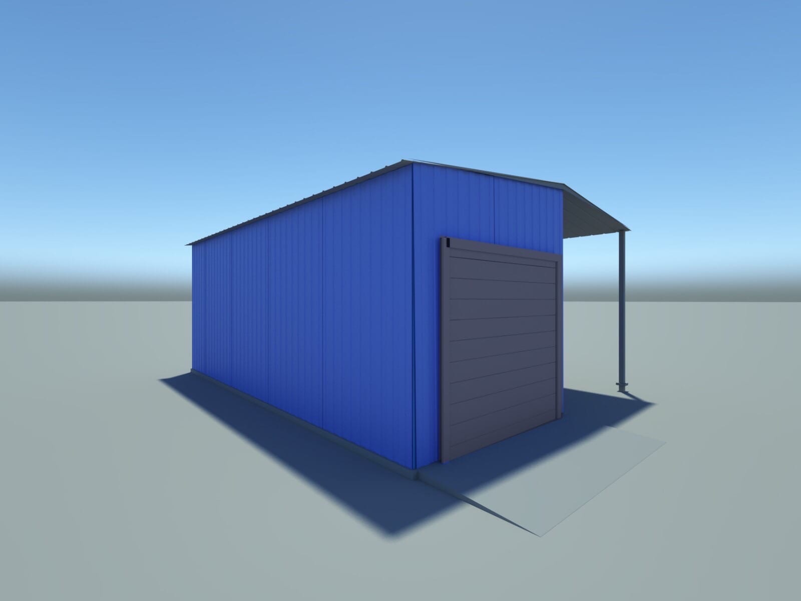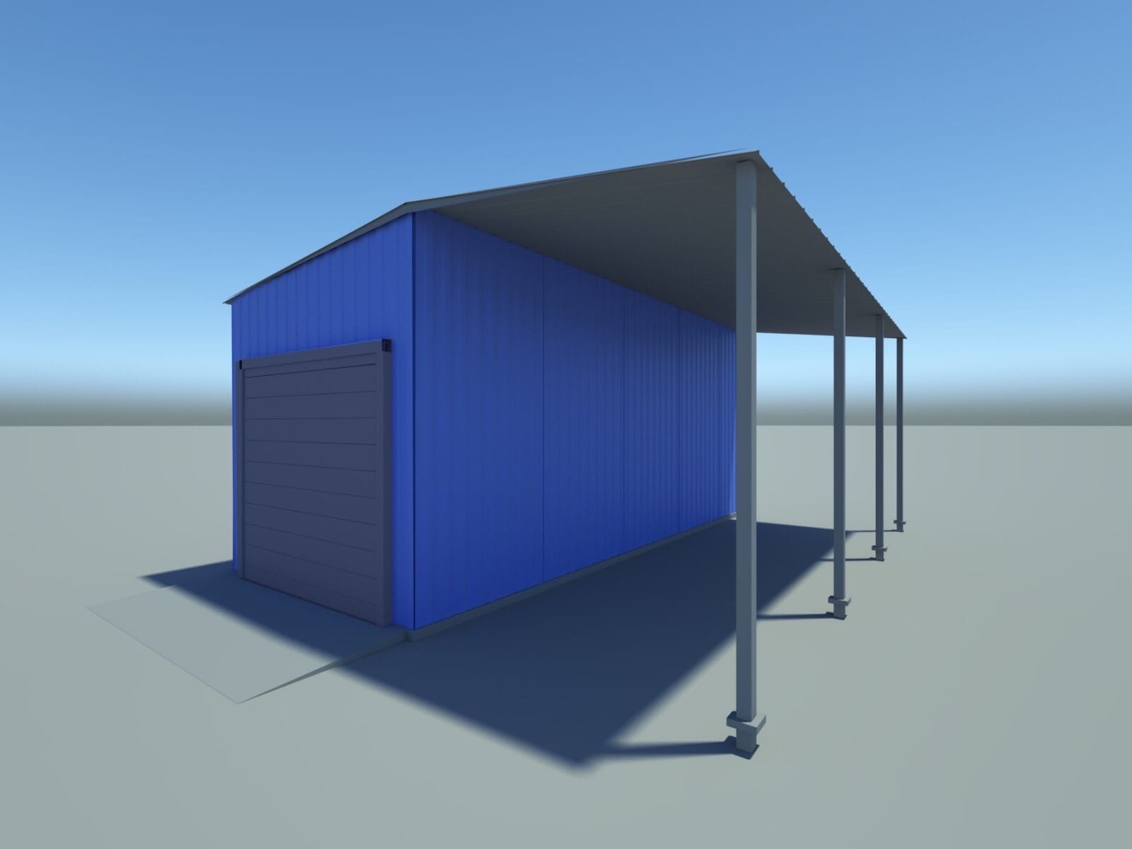 ПК Зузми. Визуализация небольшого гаража с навесом на винтовых сваях.