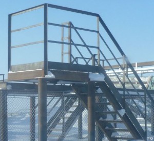 Лестничные ограждения представлены в нескольких конфигурациях - для пожарных и технических лестниц с углом наклона 60 и 45 градусов и высотой пролета от 1,2 до 4,2 м, высота металлических ограждений может составлять 1000 или 1200 мм.
