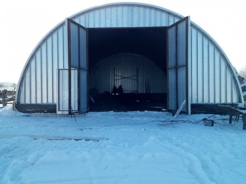 Строительство бескаркасного арочного ангара 12х30 на готовом фундаменте заказчика в Коломне